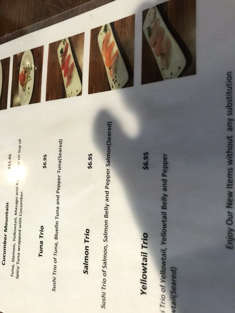 IN : TUNA, SALMON, ESCOLAR, AVOCADO, AND TOUCH OF RICE (SOY PAPER)